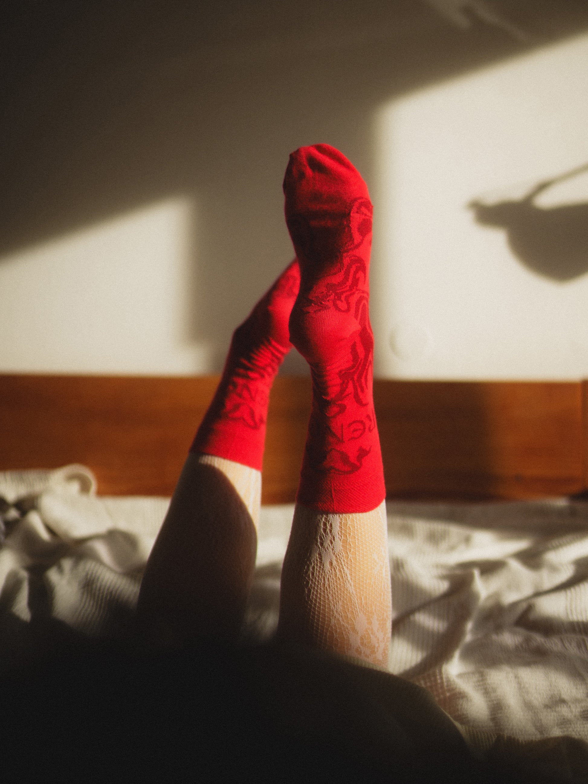 Whether you're dressing up for a special occasion or just looking to add some flair to your everyday look, these socks are the perfect choice. The pattern was inspired by the ornamented Art Nouveau movement. With their unique and eye-catching print, these socks add a touch of elegance to any outfit.